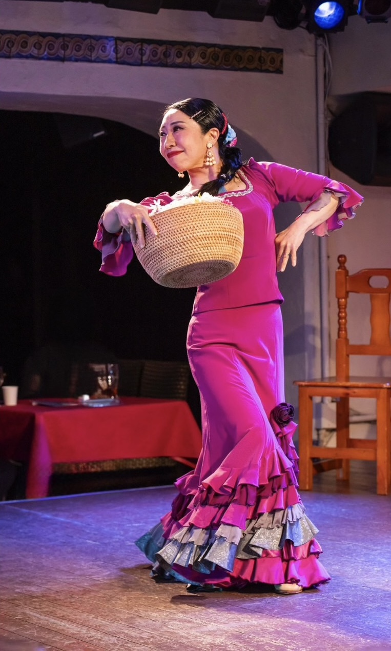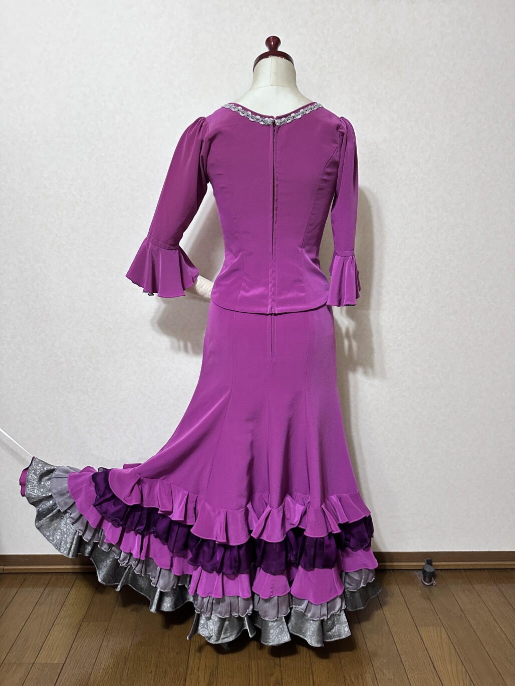 コリンとは、後ろ丈が引きずるほど長い特殊な衣装のこと(バタデコーラより短め)。