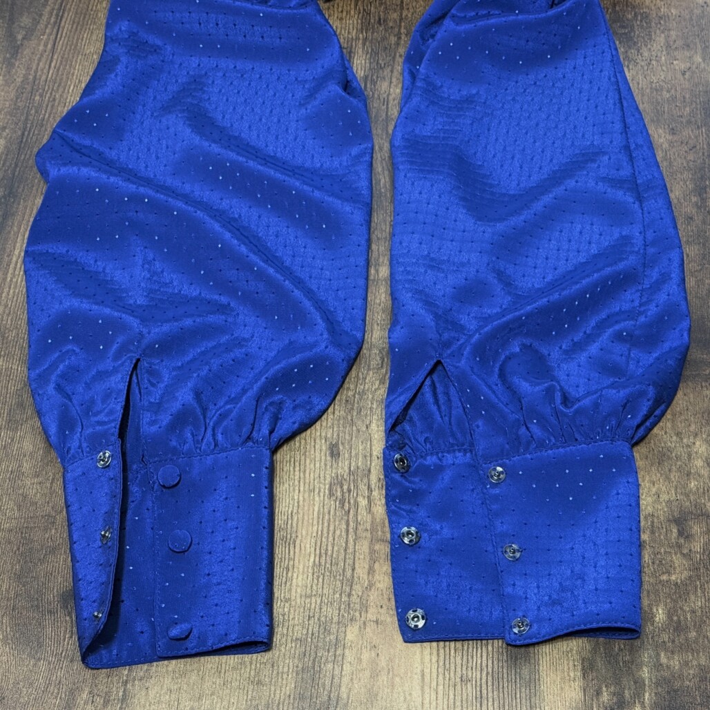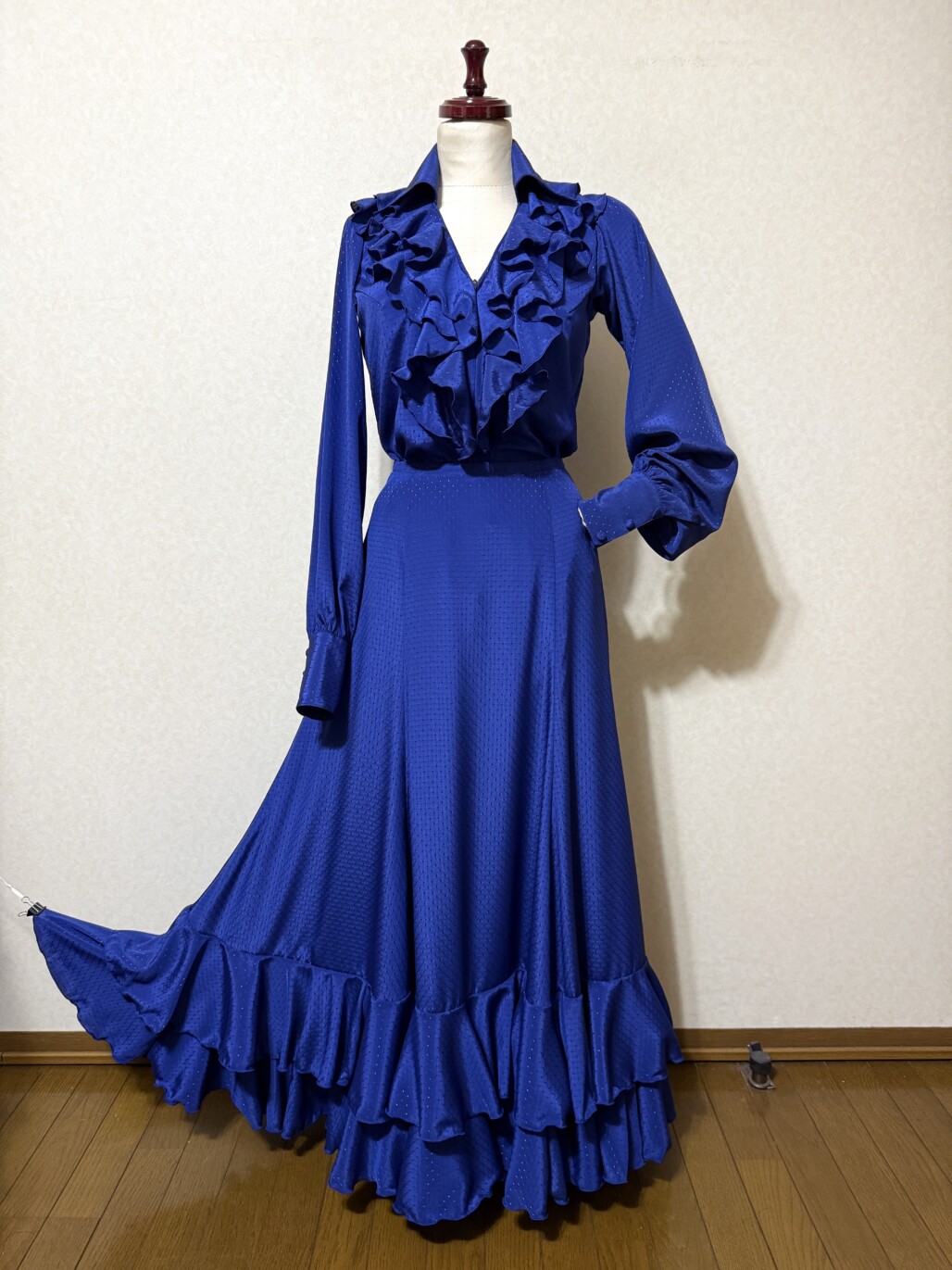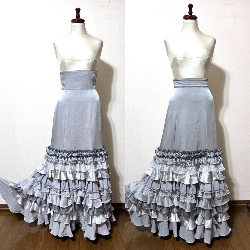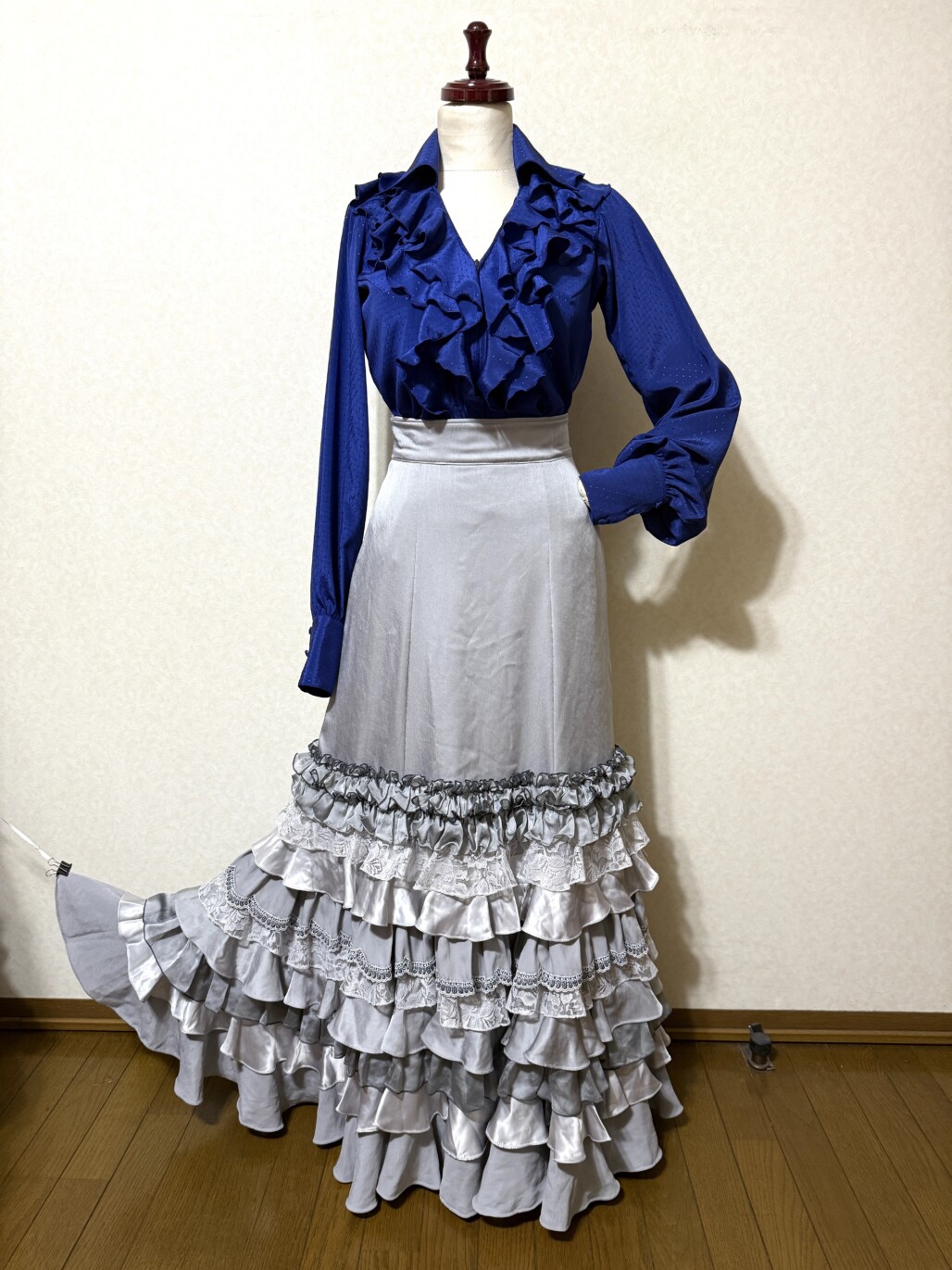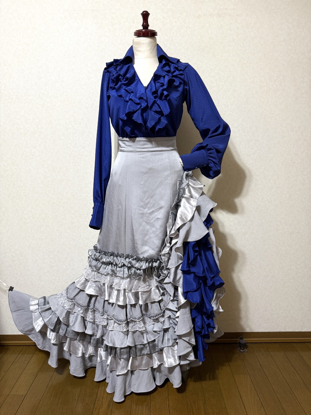群舞用衣装用にお手持ちのシルバー色ファルダをサイズ直しして、新たにブルーのブラウス&ペチコートを作らせていただきました。