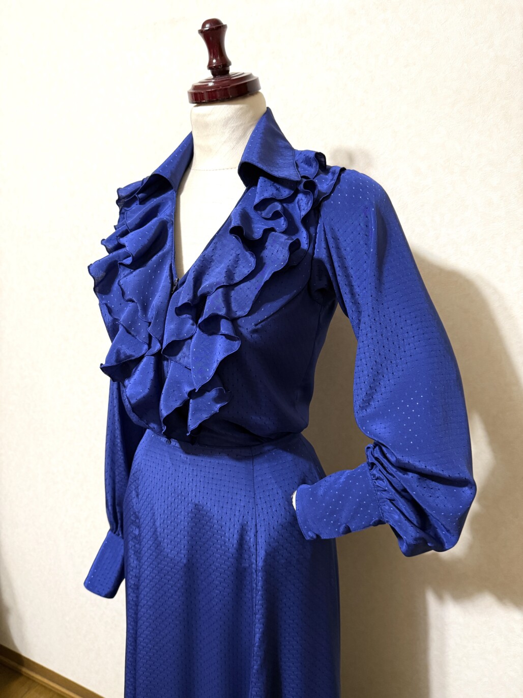 ・ドット地模様の濃いブルー生地