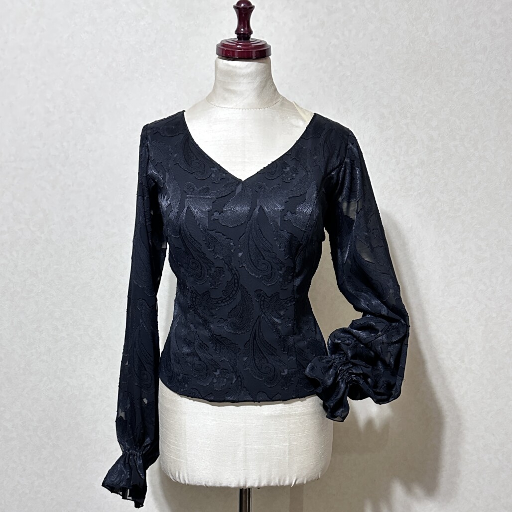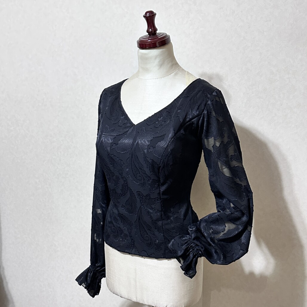 「ソレアに合う女性らしい黒ブラウス」