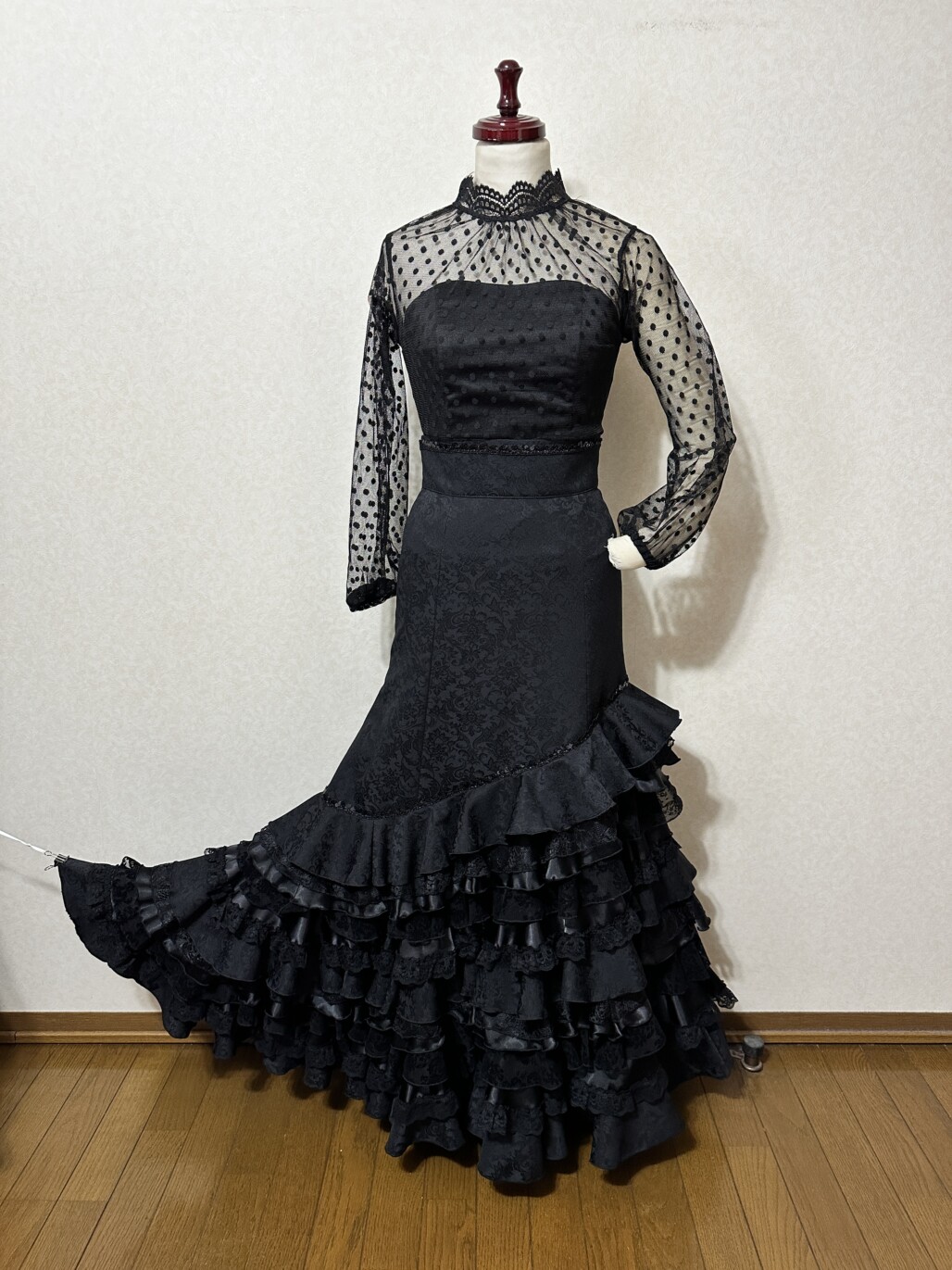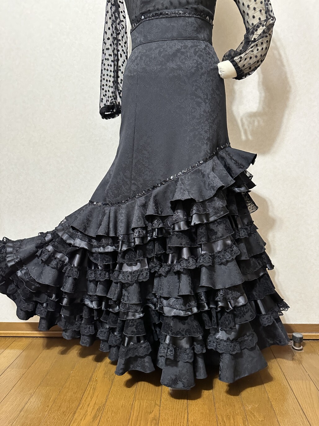 お手持ちのオシャレなブラウスに合わせてボランテたっぷりの黒色ファルダを作らせていただきました。